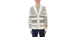 The argyle design with contrasting color palette defines the stylish character of the four thread pure cashmere cardigan. The reference to the traditional Fair Isle pattern emphasized by the knitting technique is offset by a modern and slim fit. An original alternative to the classic layer.