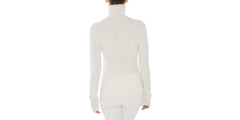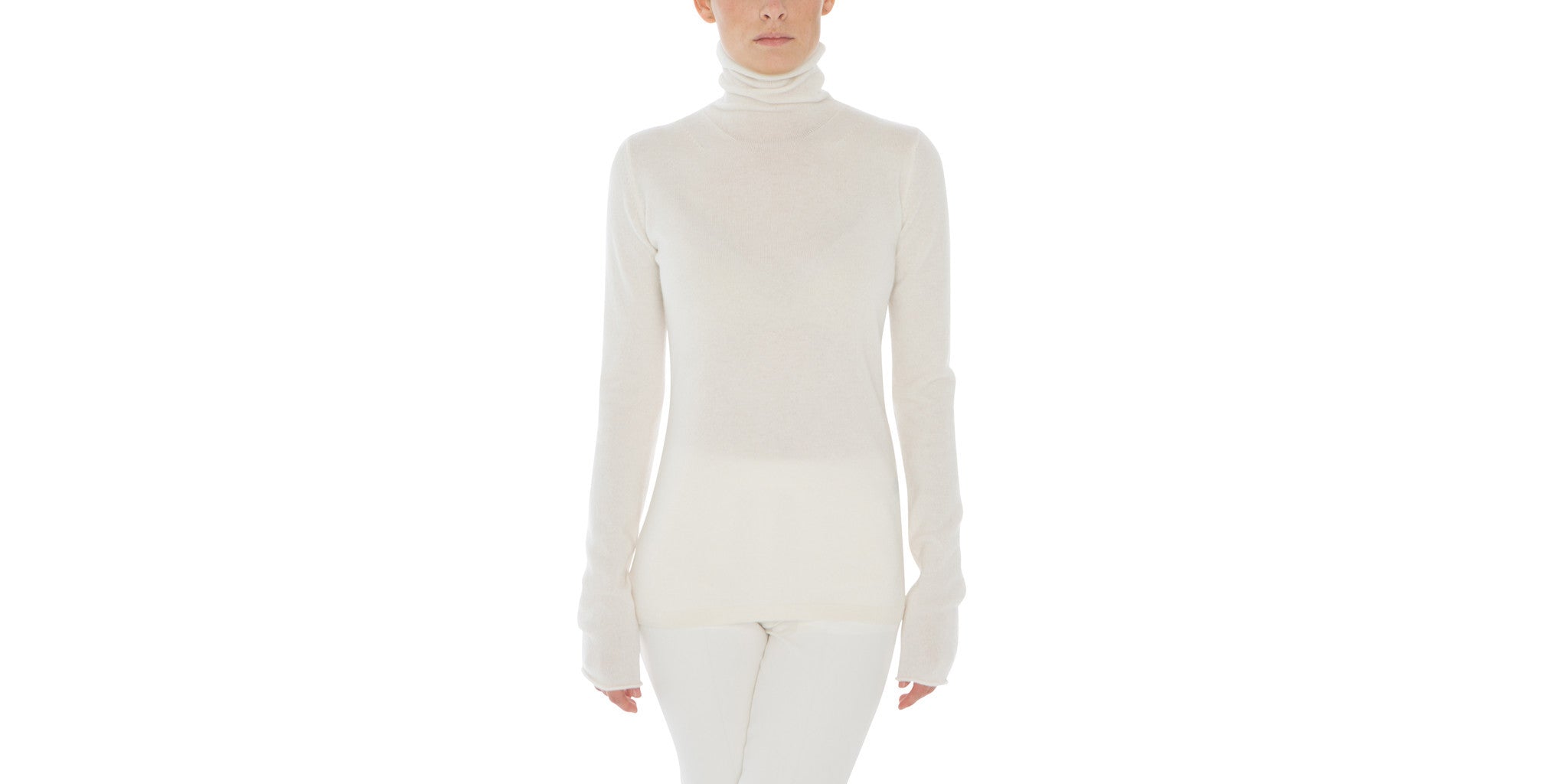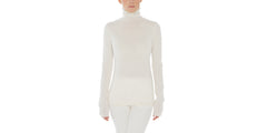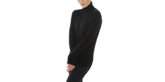 Light-weight high collared "turtleneck" sweater in pure cashmere, worked in a soft plain two-ply knit to accentuate the downy texture and velvelty finish of the fibers. The hip lenght and fitted cut come together to ensure an effortlessly casual flavor.