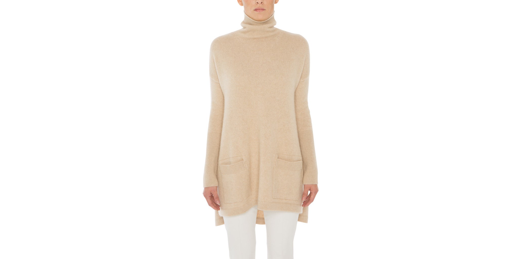 Medium-weigth pure cashmere tunic, worked in a soft and elegant two-ply plain knit that ensures beautiful flowing lines. The semi-fitted below hip length gives this versatile style a comfortable silhouette so it never hugs the figure. Perfect to pair with a light jacket.