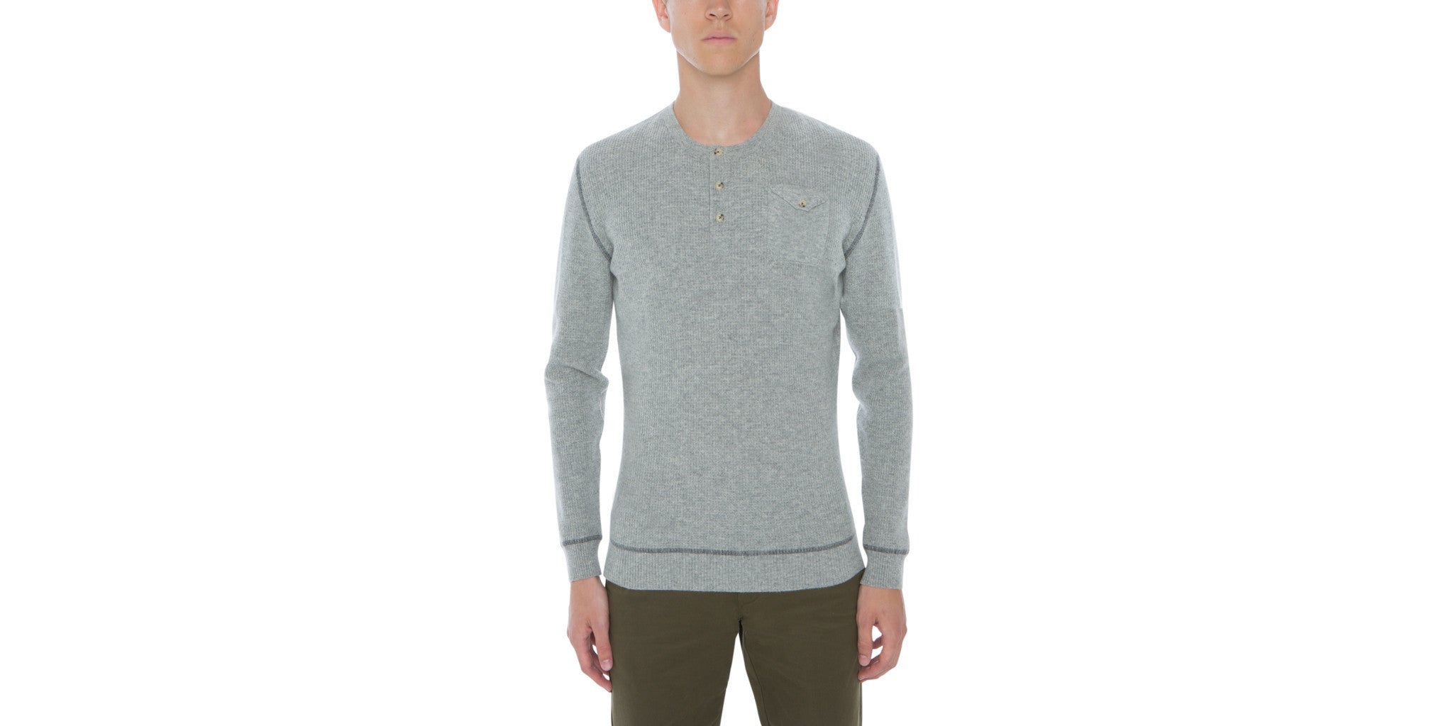 The henley collar sweater in pure cashmere, worked in a soft single tread is inspired by traditional English rowing heritage. Naadam's taste is reiterated in this functional, slim fit staple through the combination of the two types of knit-work, which focuses the effect of the waffle stitch on the body and reserves the jersey stitch for the elbow patches and pocket.